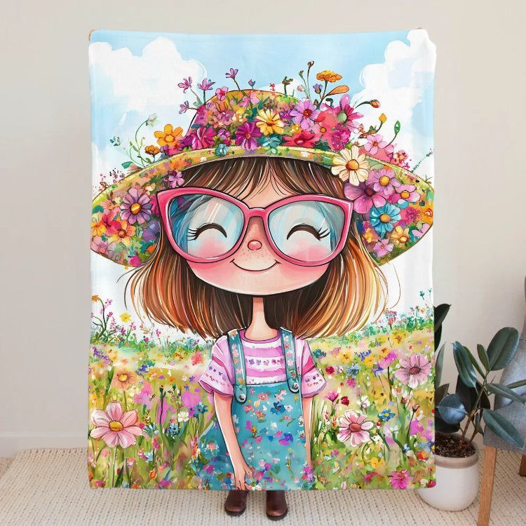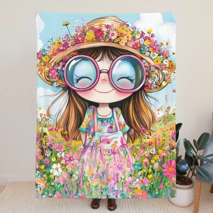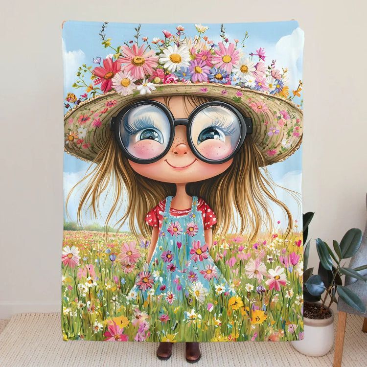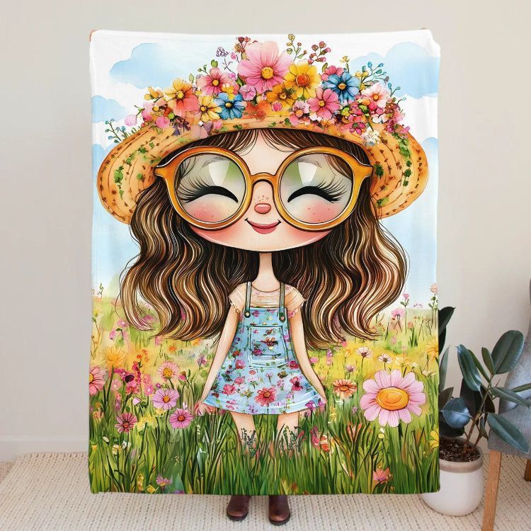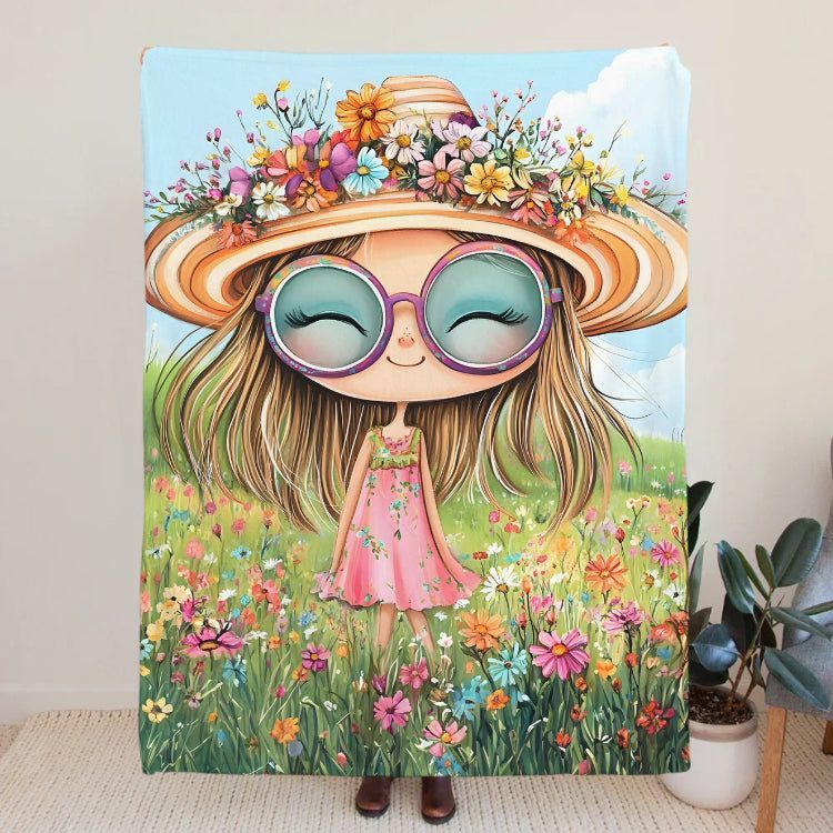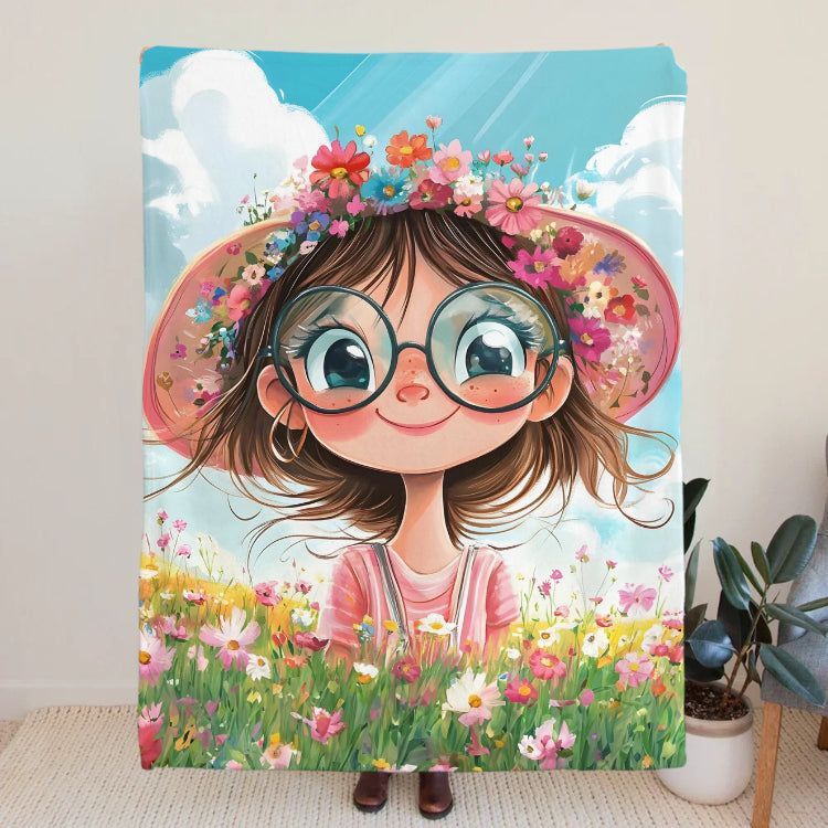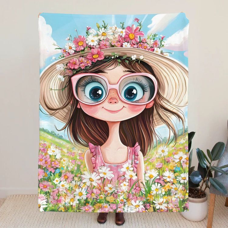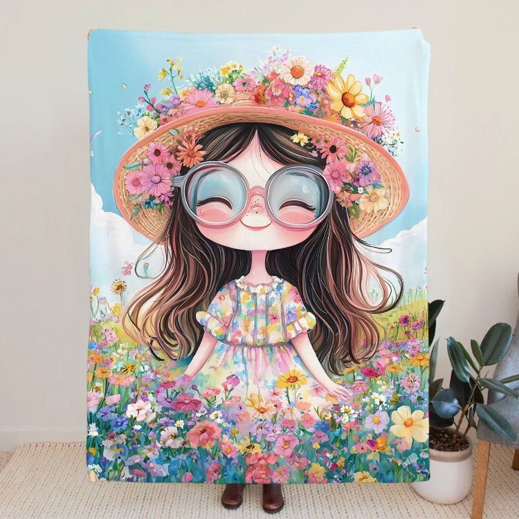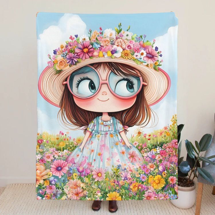 Individuell gestaltete, weiche Decken mit Cartoon-Blumenmädchenmotiven und Namen können personalisiert werden.
