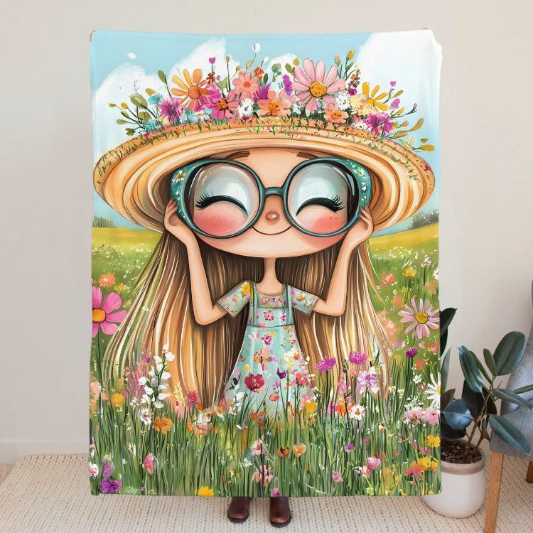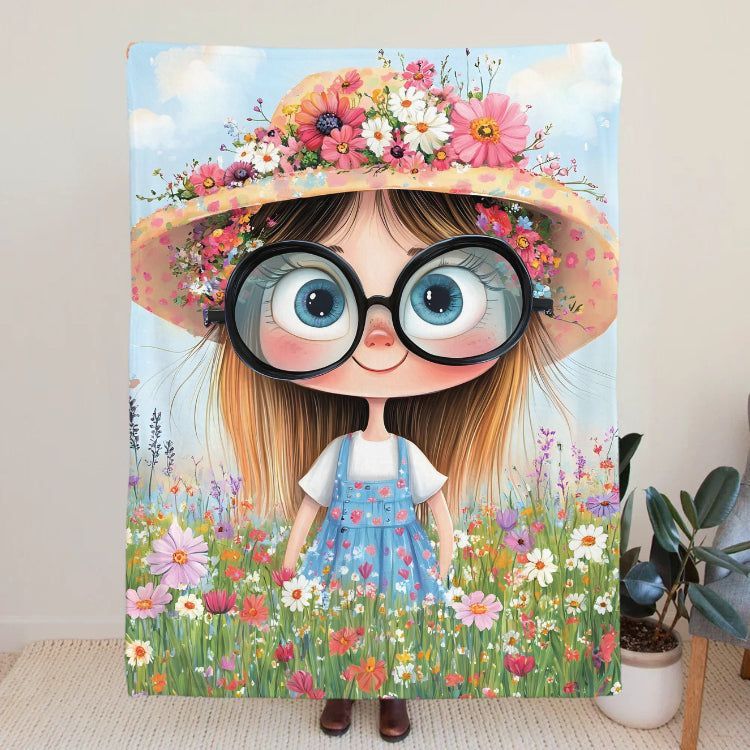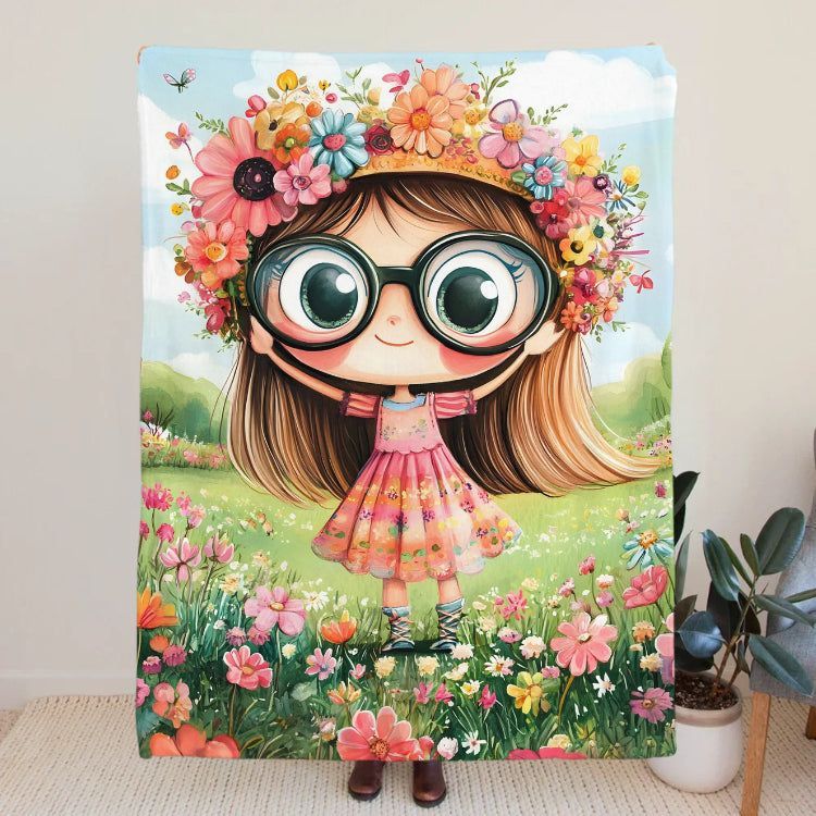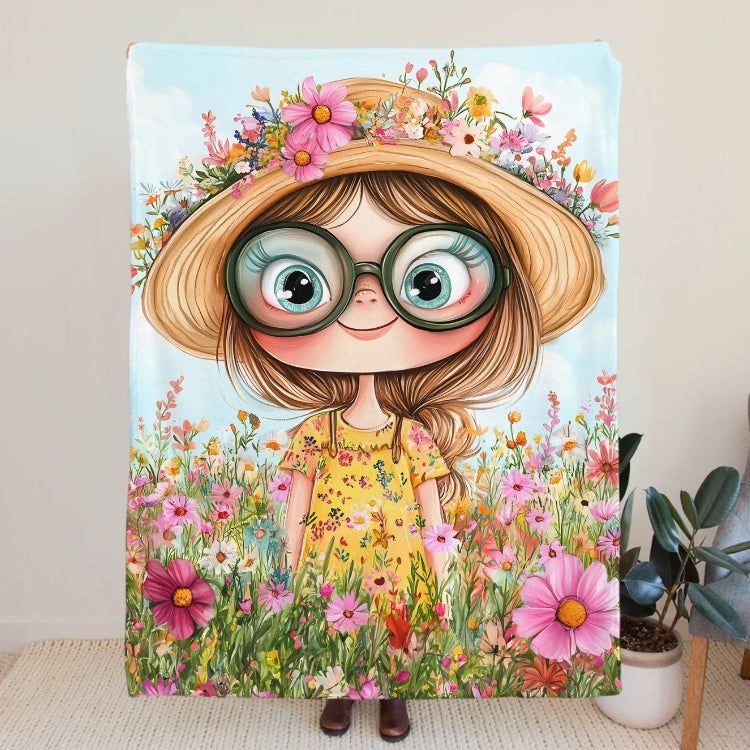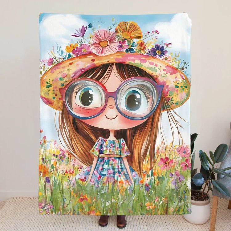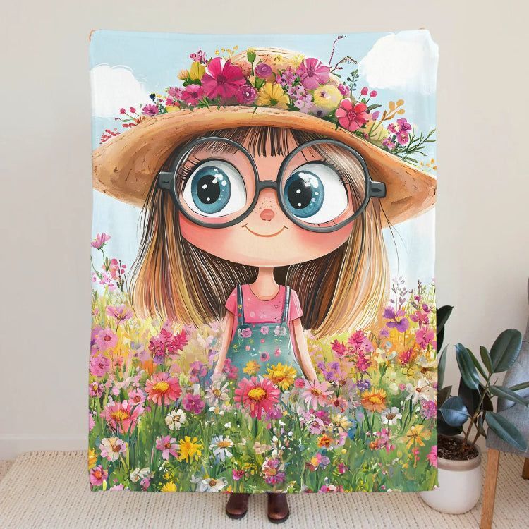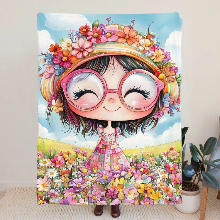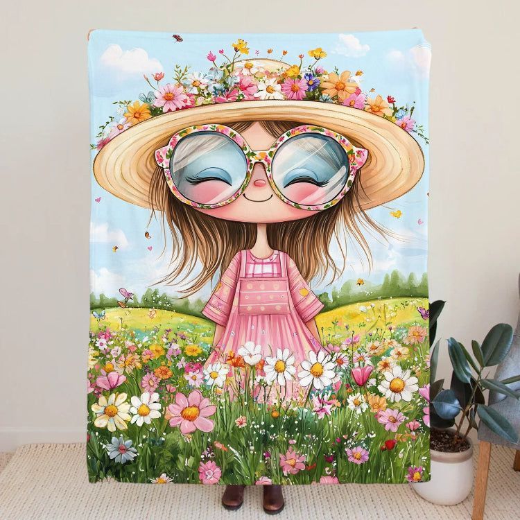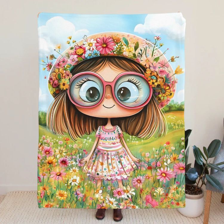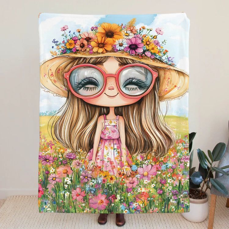 Individuell gestaltete, weiche Decken mit Cartoon-Blumenmädchenmotiven und Namen können personalisiert werden.