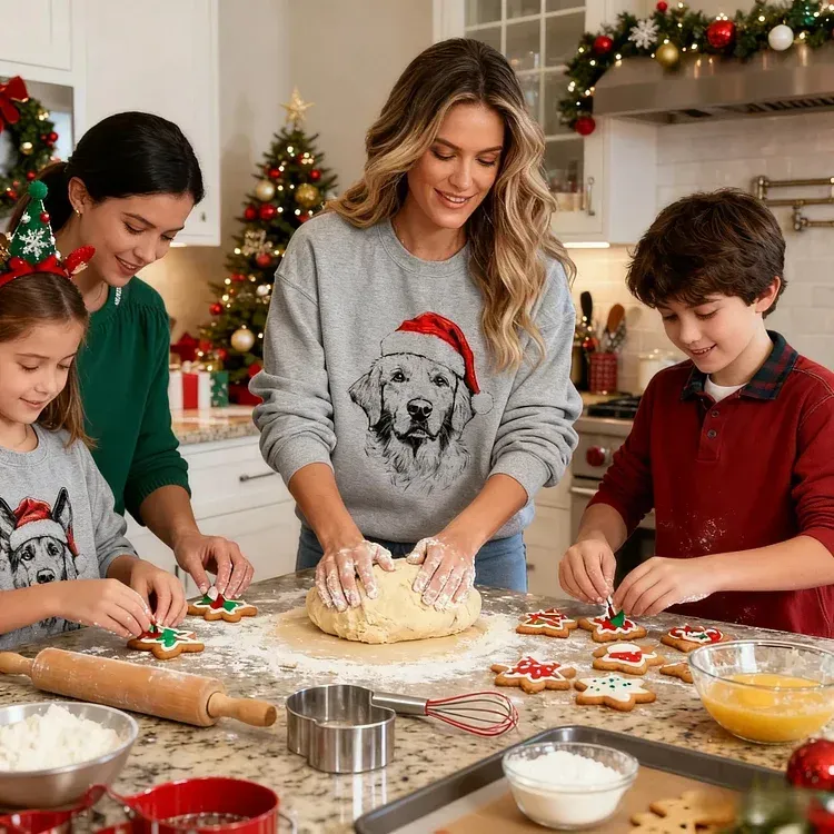 Individuelles Haustier-Weihnachts-Sweatshirt – Personalisierter Rundhalsausschnitt mit Hunde- und Katzen-Weihnachtsmütze