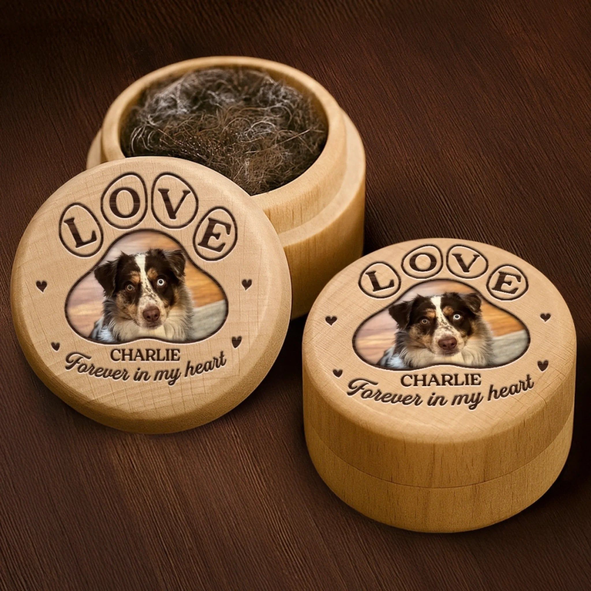 Individuell gestaltete Foto-Holzkiste aus Fell – Personalisierte Gedenkgeschenke für Hunde und Katzen – Für immer in meinem Herzen