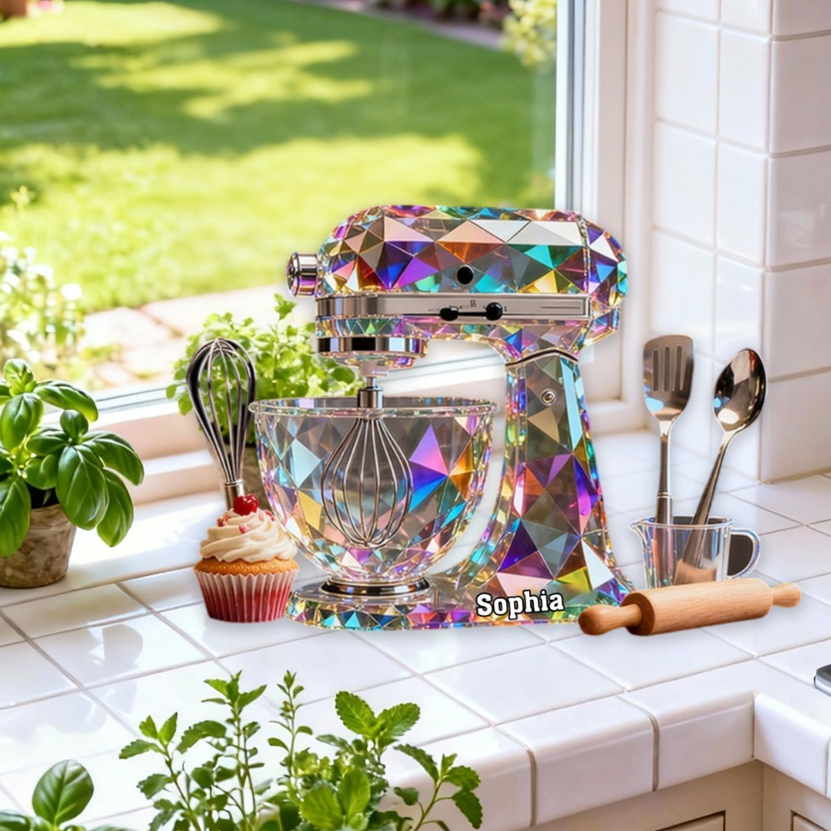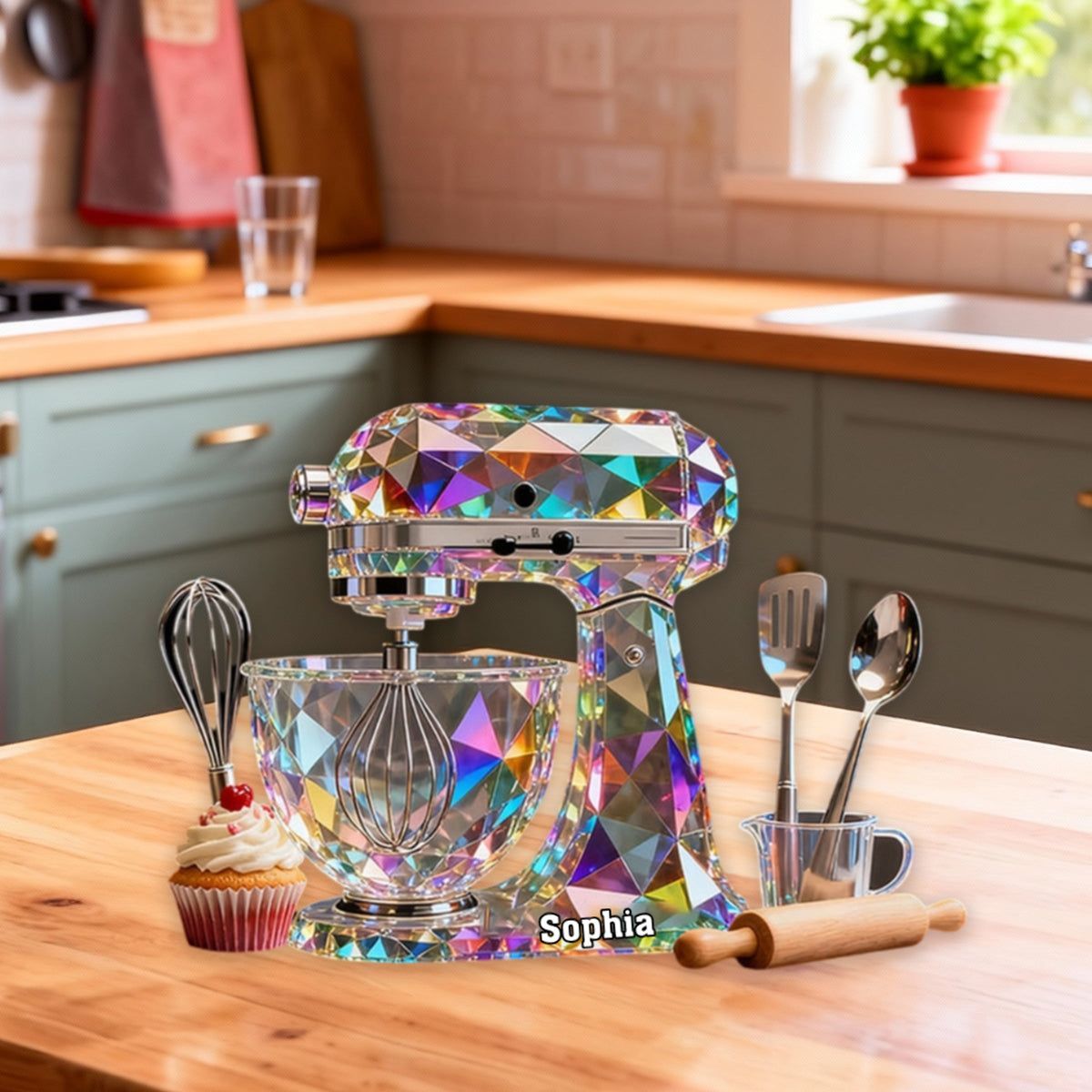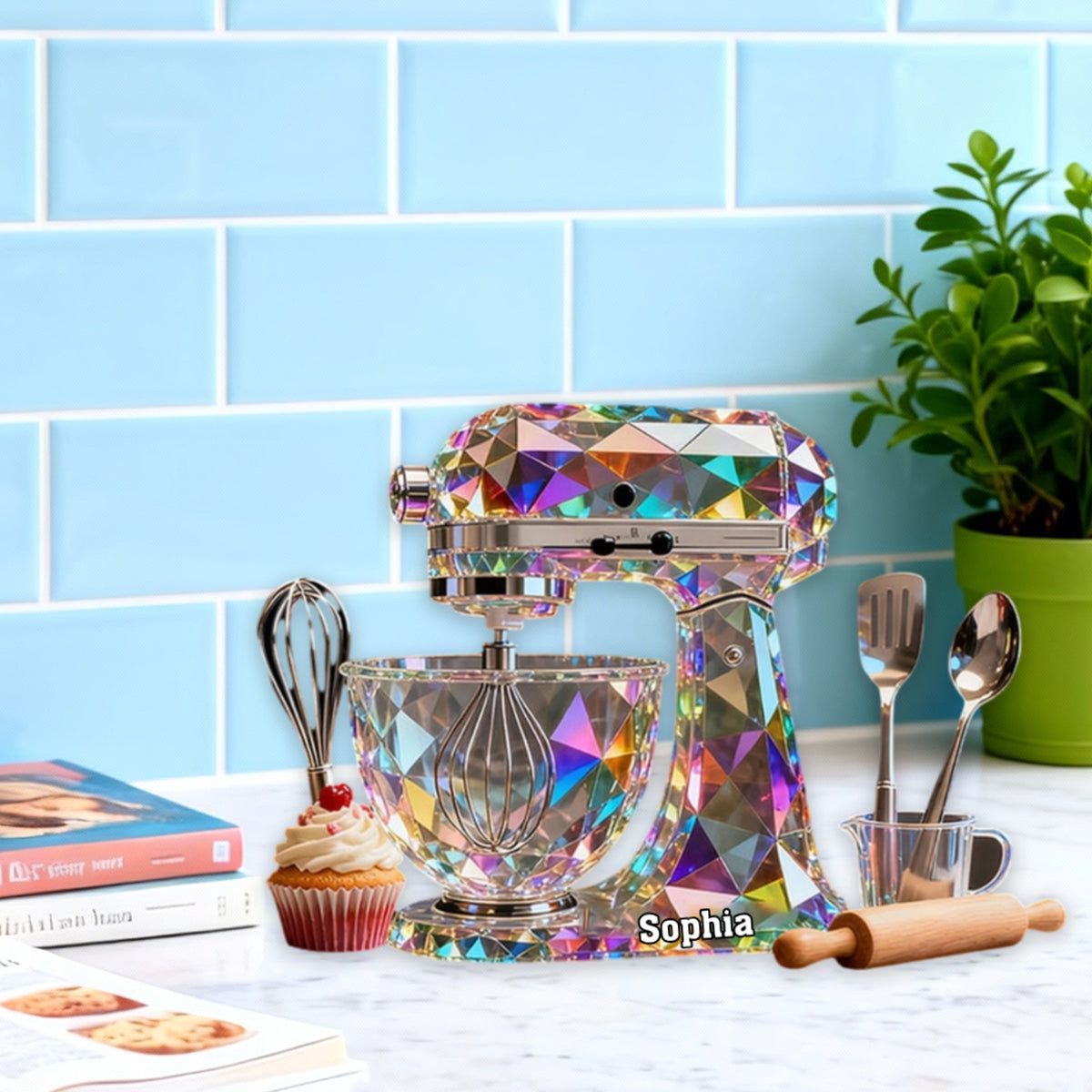 Teig mischer Maschine Custom Name Buntglas-Effekt Acryl-Plakette, Geschenke für Back liebhaber