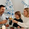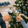 Frohe Weihnachten – Personalisiertes blaues Weihnachtsbaum-Weinglas mit langem Stiel