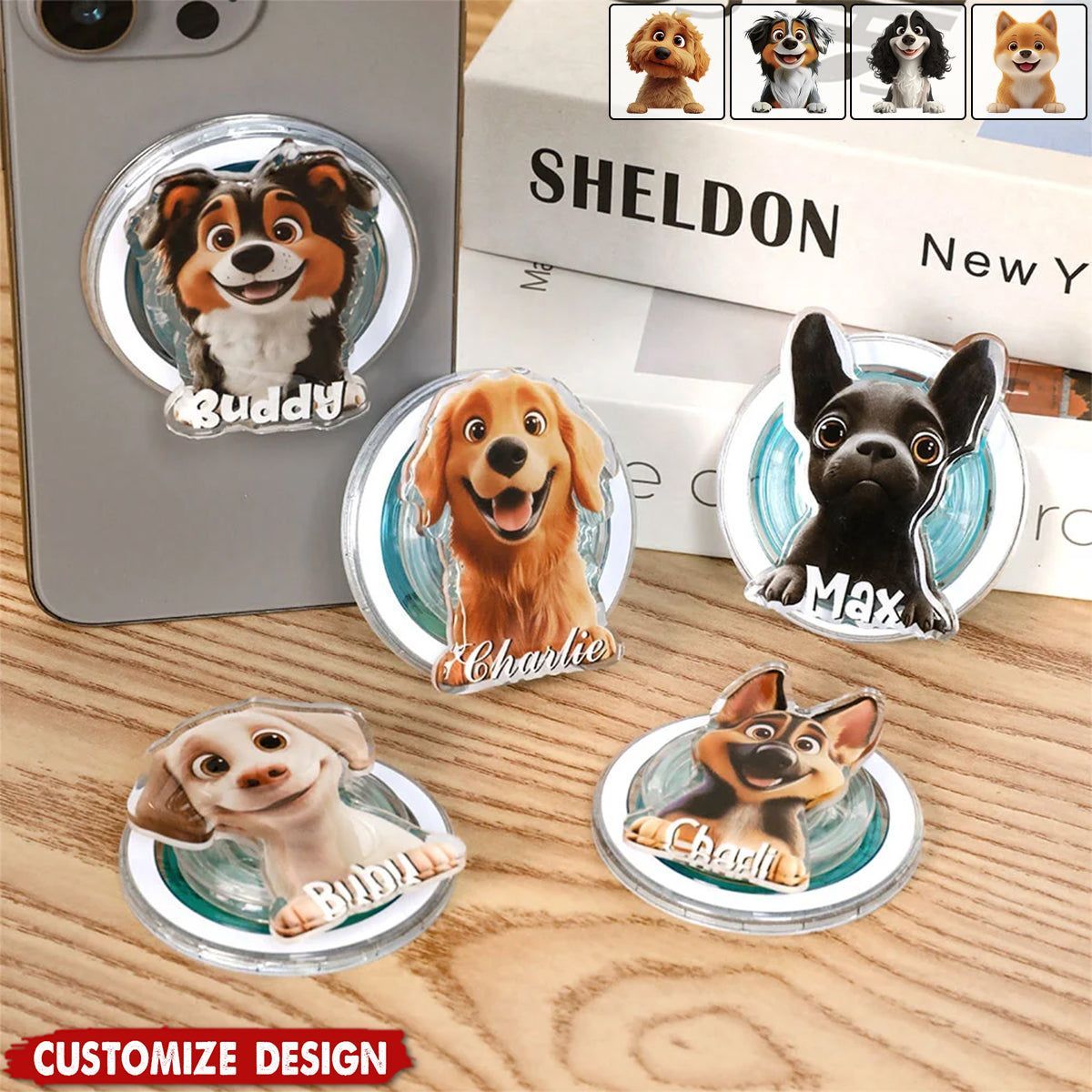 Personal isierte Cartoon Dog Magnetic Phone Grip Telefon Zubehör-Geschenk für Hunde liebhaber