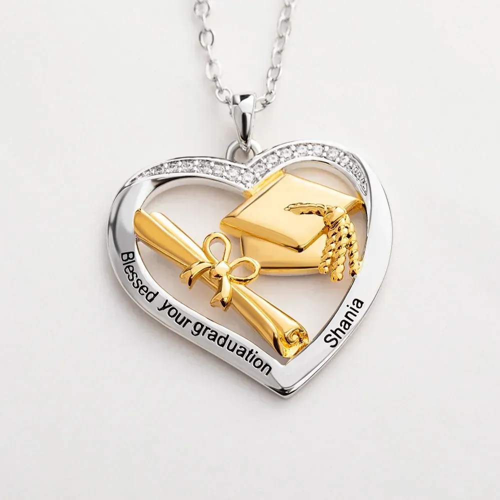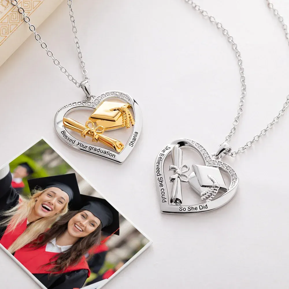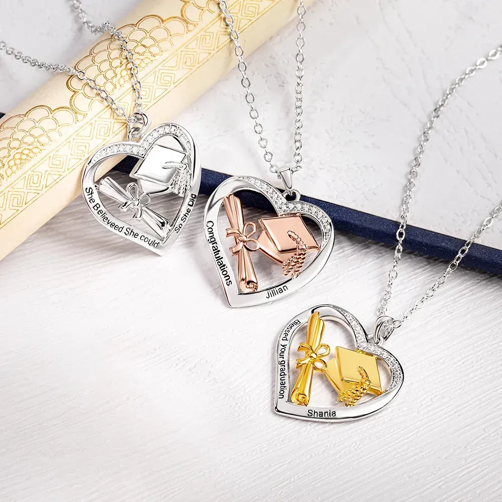 Personal isierte herzförmige Graduation Cap Scroll Halskette mit Zirkon und graviert Text Graduation Geschenk für Absolventen Frauen
