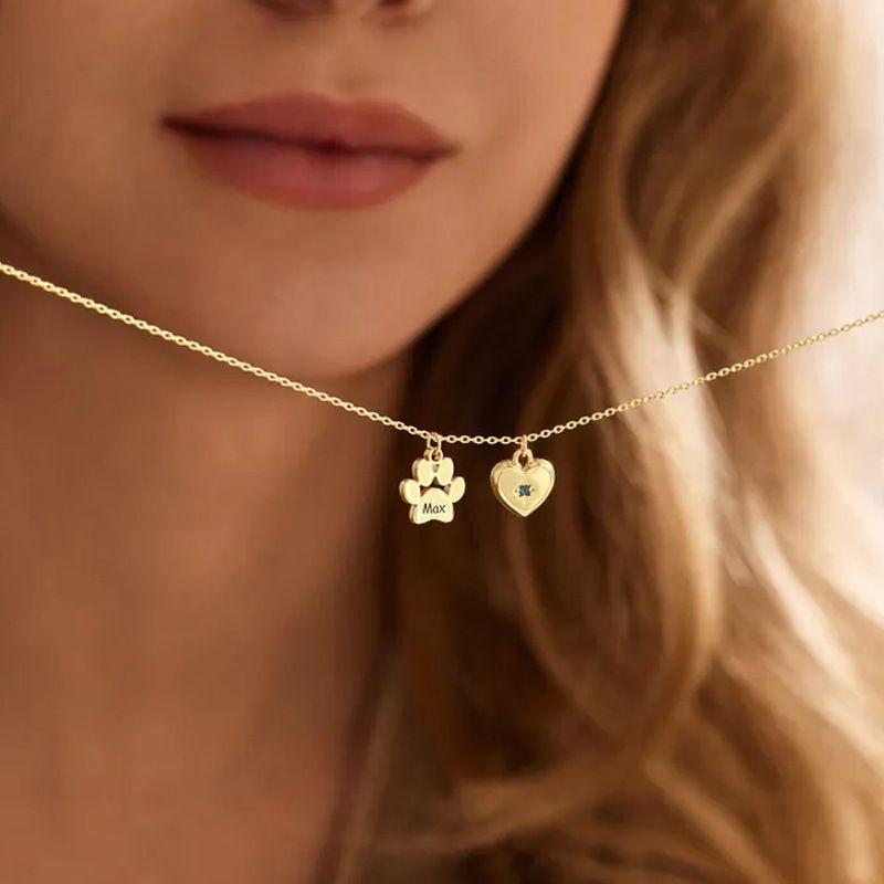 Personal isierte Haustier Paw Birth stone Halskette, Geschenk für Haustier liebhaber